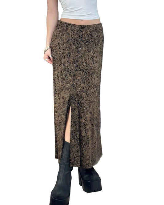 Printed 90's Slinky Maxi Skirt | Size 30" Waist