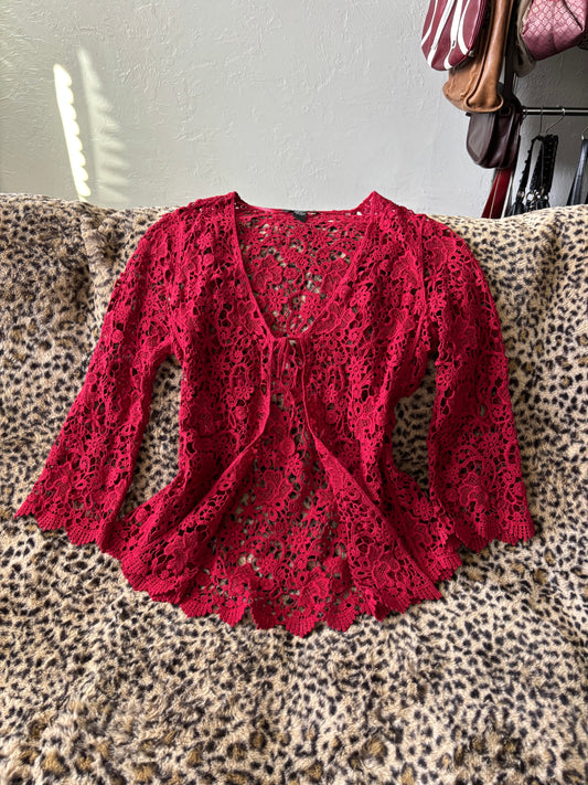 Sold outRed Crochet Fringe Top | Size S
