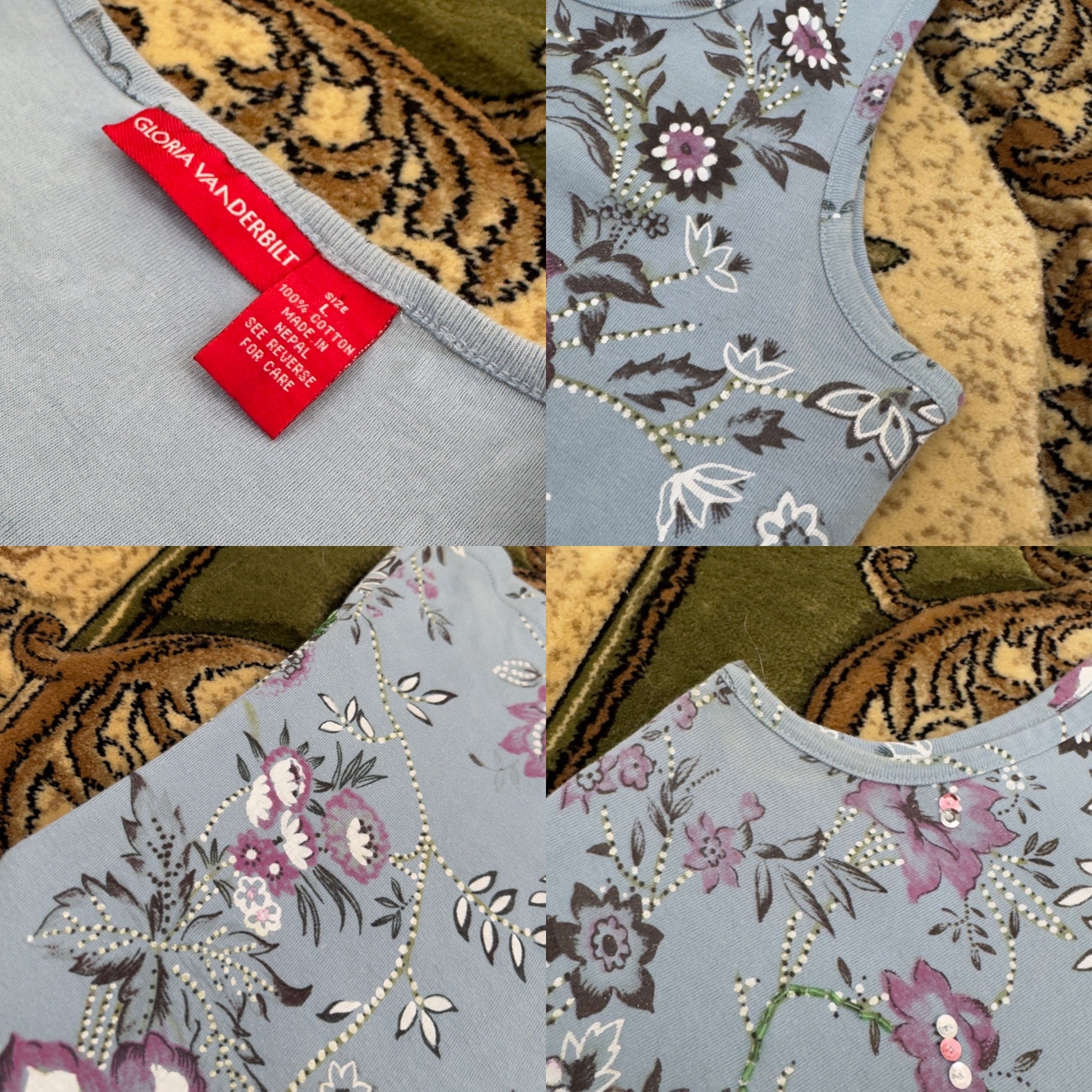 Blue Beaded Tank | Size L