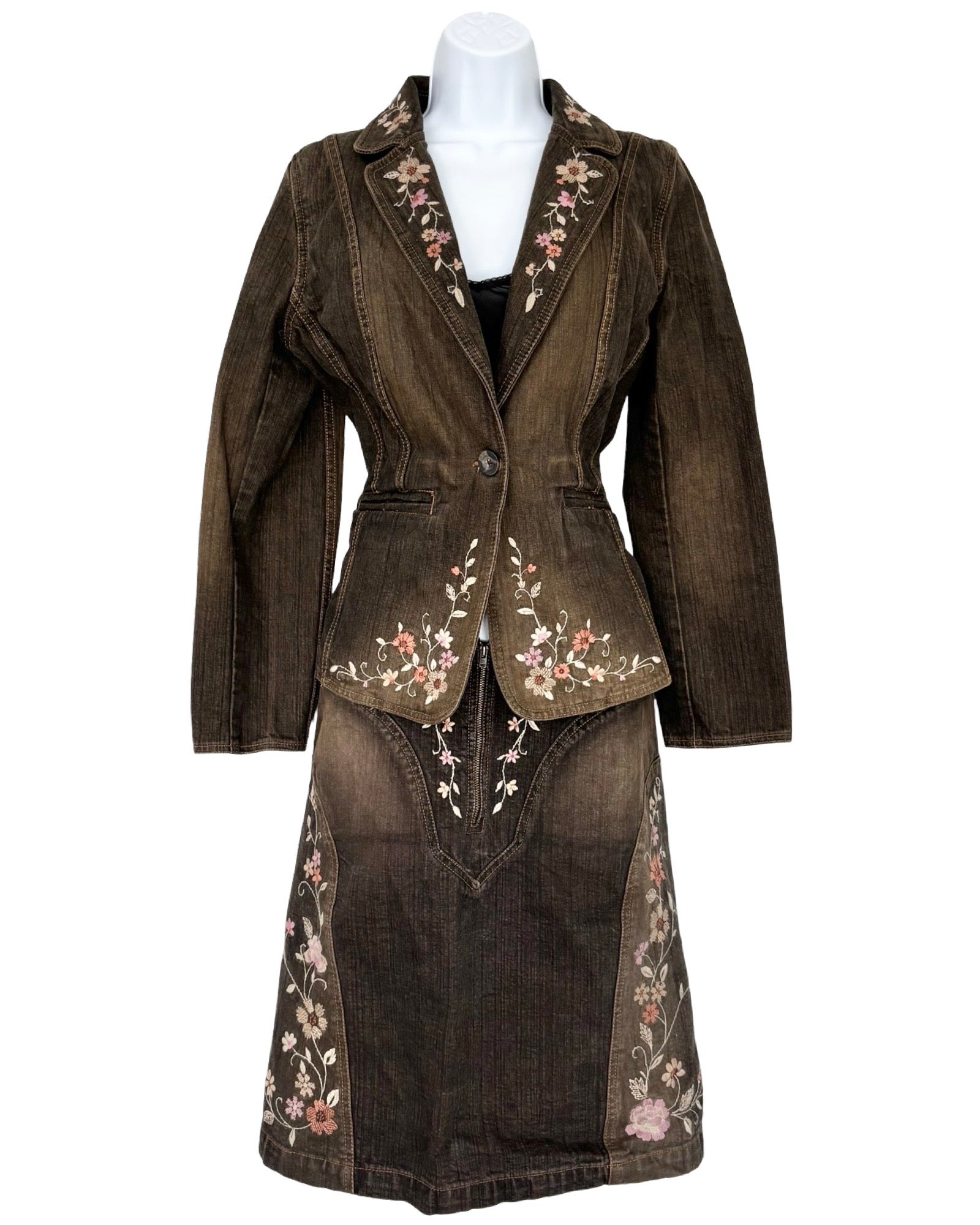 Apostrophe 90's Embroidered Denim Blazer | Size 14P