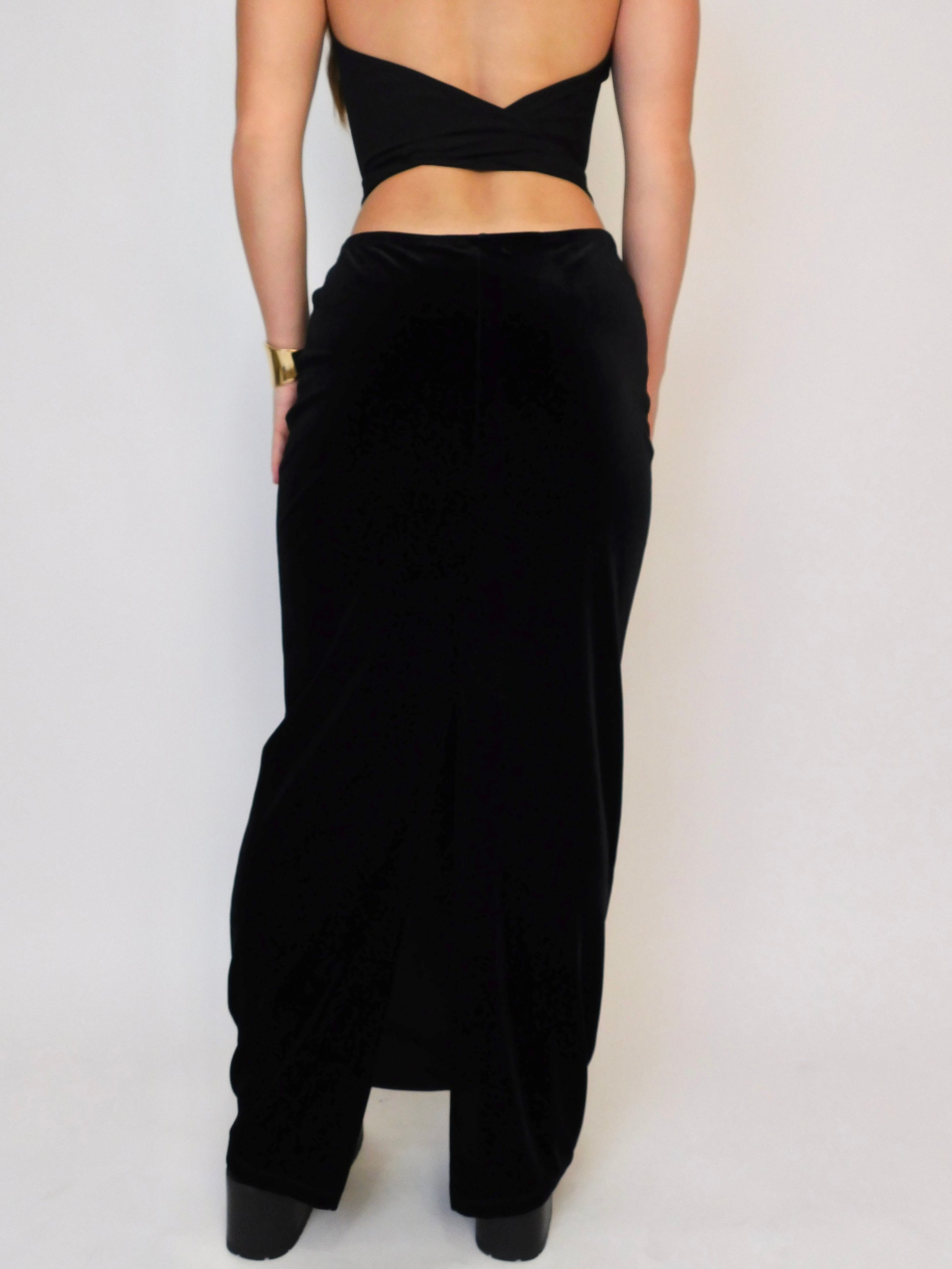 90’s Black Velvet Maxi Skirt | Size M